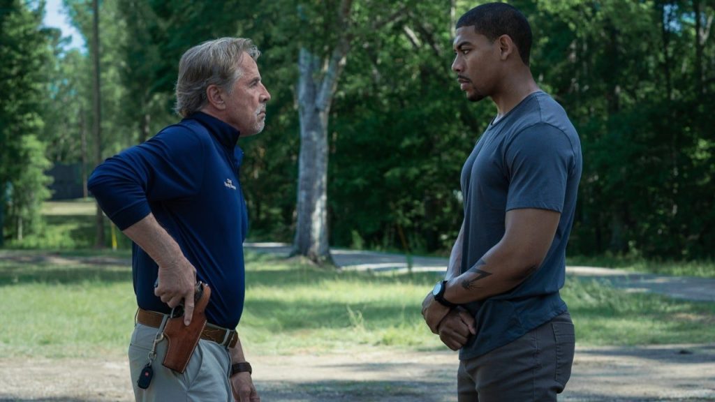 Although Don Johnson doesn’t provide anything particularly new as the typical “corrupt police chief” character, he’s undeniably perfect casting on paper (though not quite “inspired”). Who really stood out to me were Emory Cohen and David Denman as the two white, male deputies who harass Terry at the beginning of the film. Initially, the script presents these characters as your typical “racist white cops from hell,” but then gradually and subtly sets these characters down two different paths. A film with this kind of subject matter can often become one-sided or frustratingly basic. This in turn makes the subject matter feel preachy and juvenile even if the core message is agreeable. In other words, if a film is going to explore a bloated subject such as police brutality/racism, it needs to dig deeper or be more comprehensive than what came before. Because of a tight, balanced script that features subversive genre choices, Rebel Ridge avoids feeling redundant.
