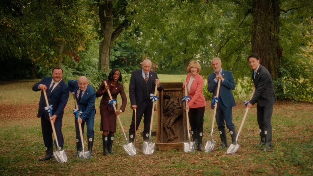 The various performers are well-cast (besides one notable exception) in their respective roles as less-than-serious world leaders. They effectively toe the line between believable and satirical, which is no surprise considering their combined acting experience. Each character represents one of the worst aspects of real-life politicians, to the point that even amid an apocalypse, the only thing they seem worried about is a press statement. It’s funny because these characters are meant to challenge each other politically, but only end up doing so when it comes to personal issues. In other words, their personal struggles take priority over the needs of the people. This behavior is consistently chuckle-worthy but also scary when one considers our real-life leaders acting in such a way. The problem is that the characters are so air-headed, they’re tough to enjoy. This wouldn’t matter if their behavior was funnier, but the approach to satire is too subtle and low-key to make up for what are honestly some pretty boring characters. It also doesn’t help that although the characters are unique on paper, they don’t receive any kind of satisfying arc. Essentially, the satire is effective, but the characterization is dull and doesn’t allow us to attach to anyone. To round things out in terms of my thoughts on the characters, I couldn’t for the life of me understand why Charles Dance was cast as the president of the United States. The allusions to “Sleepy” Joe Biden are clear, but why is he British? It’s never explained and broke my immersion multiple times.