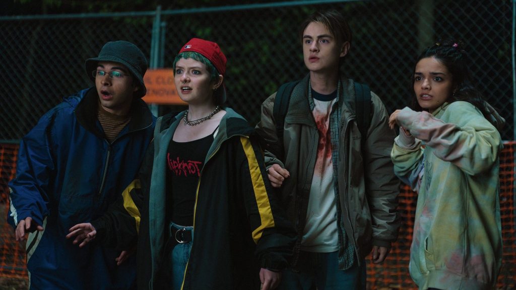 Although the three leads feel well-cast for this kind of movie, the script unfortunately doesn’t do much to distinguish their characters from the typical teenage archetypes. Although the actors’ charismas are appealing, the characters themselves are as basic as they come. The supporting cast which consists of white rap rockers, bucket hat stoners, and 90s punks is thankfully a ton of fun. Unfortunately, the script also struggles with the fact that some of its best characters are the first ones to be killed off. Because of this, the movie becomes less and less interesting as it goes along simply because the group we follow slowly becomes more generic as it moves along. Thankfully, this otherwise underwhelming third act is saved by the inclusion of one of the best cameos I’ve seen in a long time. It’s funny, specific, appropriate for the era, and meaningful to the plot.