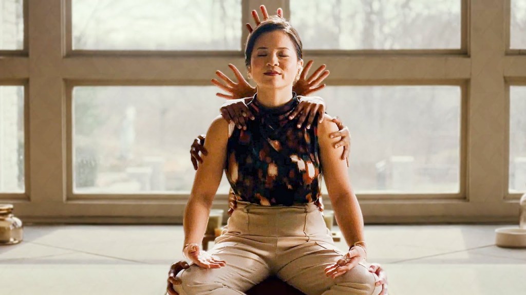 In the lead role, Kelly Marie Tran is mediocre. She’s not bad, just very forgettable. Similar to Grafted (2025), another streaming release from a few weeks ago, Tran and the supporting cast are hindered by their unlikable characters. Crappy characters are a staple of the horror genre (specifically slashers), but only work if they eventually suffer some kind demise that sees them pay a deadly for being so unlikable. If the character is eventually going to become the hero we’re supposed to root for, making them unlikable is a stupid decision. This does add a somewhat humorous commentary on the sometimes grifter nature of self-help gurus, but it’s not explored nearly enough. Why do people take so much stock in advice from people who are clearly not normal?